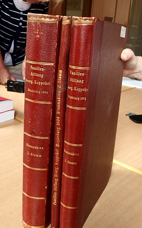 Als ich 2016 begann mich näher mit Koppehele zu beschäftigen, führte mich mein erster Weg nach Jüterbog ins Stadtarchiv zu den viel zitierten roten Büchern, mit den Signaturen 3252 – 3254, siehe Arbeitsgruppe Stammbaumblätter. Zu viert (Susanne und Helmut Kowar, Eva und Peter Rainer) trafen wir uns am 20. September 2016 im Archiv.