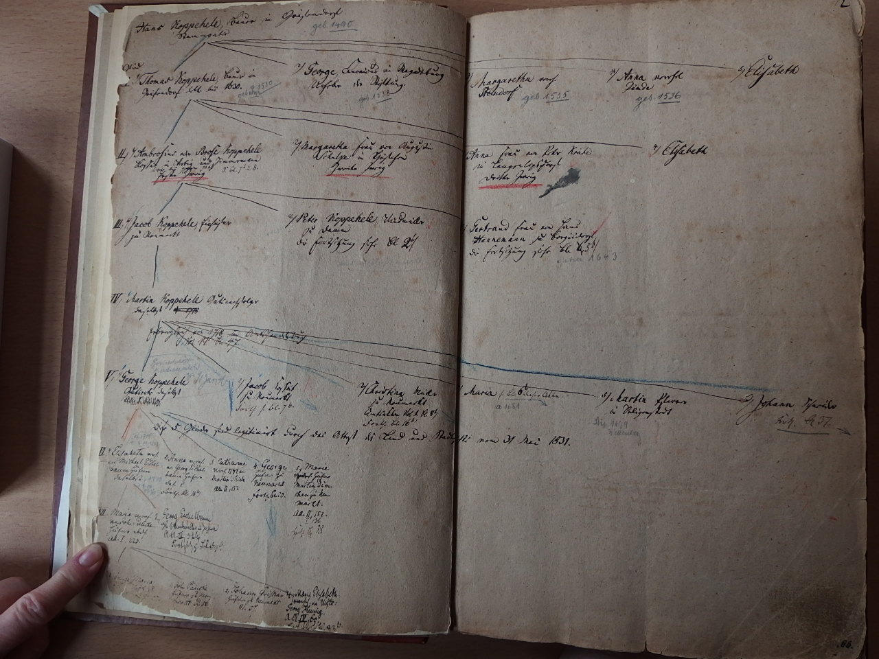 In dieser vorliegenden Stammlinie und auch in den Einträgen in den roten Büchern wird der Name „Koppehele“ geschrieben. Ich nehme an, um die Verwirrung nicht noch zu vergrößern.