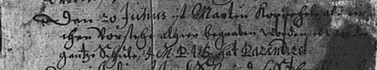 Auch Kirchenbucheinträge und Kirchenbuchauszüge waren manchmal nur ein geduldiges Stück Papier. Wie auch immer der Nachname im Taufregister geschrieben wurde, im Trau- oder Sterberegister könnte er schon wieder anders geschrieben worden sein. Wenn nicht irgendwo ein persönlicherer Zipfel zu erwischen ist, dann ist das Ergebnis meist enttäuschend. Ohne die Mithilfe von Familienmitgliedern wären wir in vielen Dingen nicht weitergekommen. Einige Unterlagen, die ich in diesem Beitrag vorlege, wurden mir von Klaus Koppehl zur Verfügung gestellt. Wie zum Beispiel dieser Eintrag aus dem Sterberegister von 1714. Das Durchsuchen dieser Register ist eine Sache für Spezialisten mit unglaublich viel Geduld und Erfahrung.