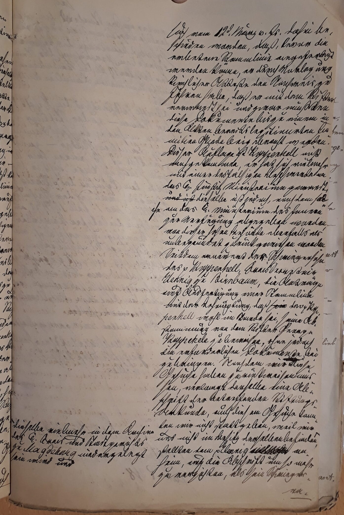 Die beiliegende Stammlinie ist dem S. Hennig zu Schweda mit dem Bemerken zurück zusenden, daß die, der Administration der Koppehel’ischen Stiftung zu Magdeburg, einreichende Stammlinie die Dokumente No 1-8 des wieder angeschlossene Ba… beizufügen ..ren; die Anträge wegen Bewilligung eines Legates an die …XI. B u. C der Stammlinie aufgeführten Geschwister seiner Frau aber nach Leitung nach der ihn Information zu begründen seien.