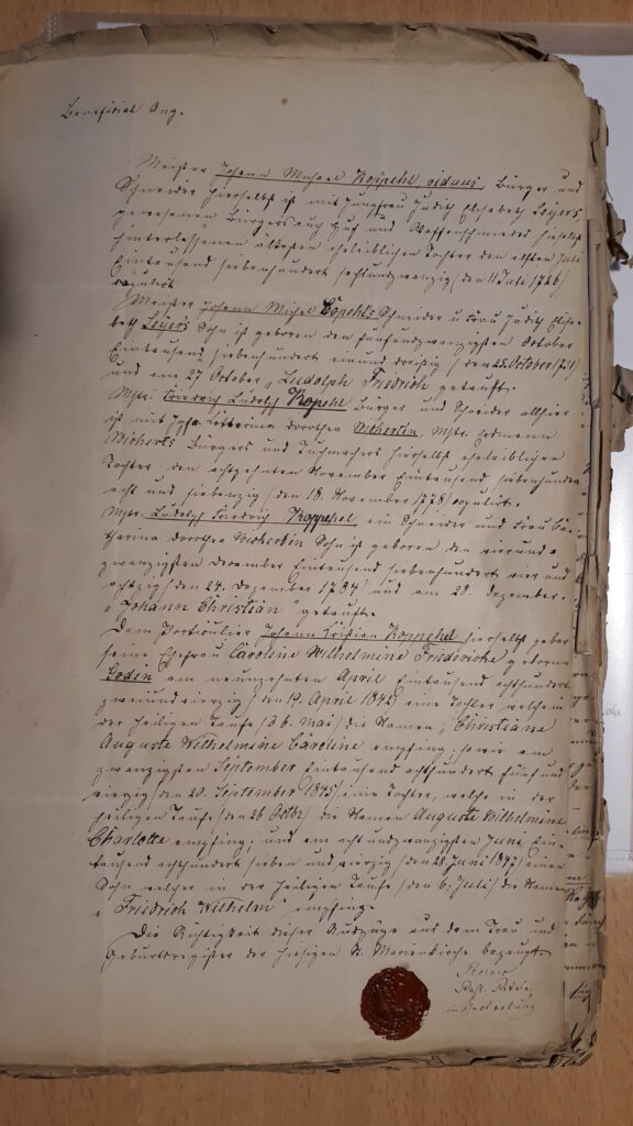 VII. Heinrich Conrad Koppehl, geb. 16. Juli 1723 Leg. Durch das kirchliche Attest d.d. Stendal, den 16. August 1878